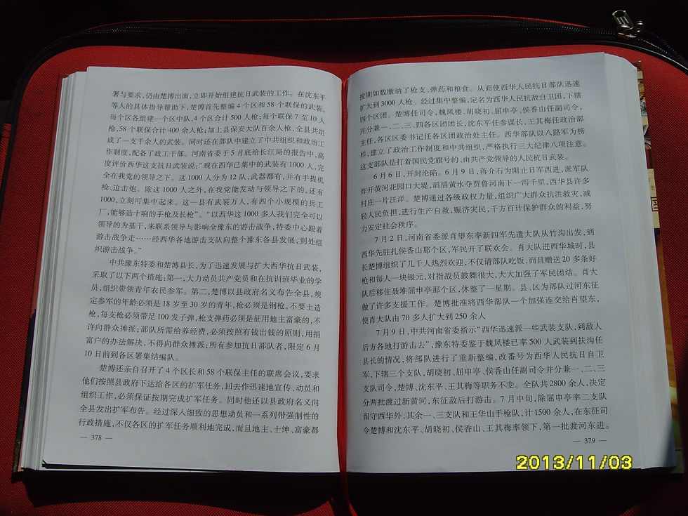 彭司令员侃侃而谈,我在屏息静听。“上层统一战线要搞好,下层也必须搞好。党在西华县的统一战线工作就搞得很有成绩,党对楚博做了许多工作,使他对我党的路线政策有了更多的理解。他是一名国民党员,但为人正直,有爱国之心,主张积极抗日,拥护国共合作,公开表明自己是抗日民族统一战线的一员。组织起有共产党员参加领导的4000人的抗日武装,胡、屈、侯都是共产党员,这支抗日武装实际掌握在我党手里,他是有很大功绩的,对我党的帮助是很大的。”